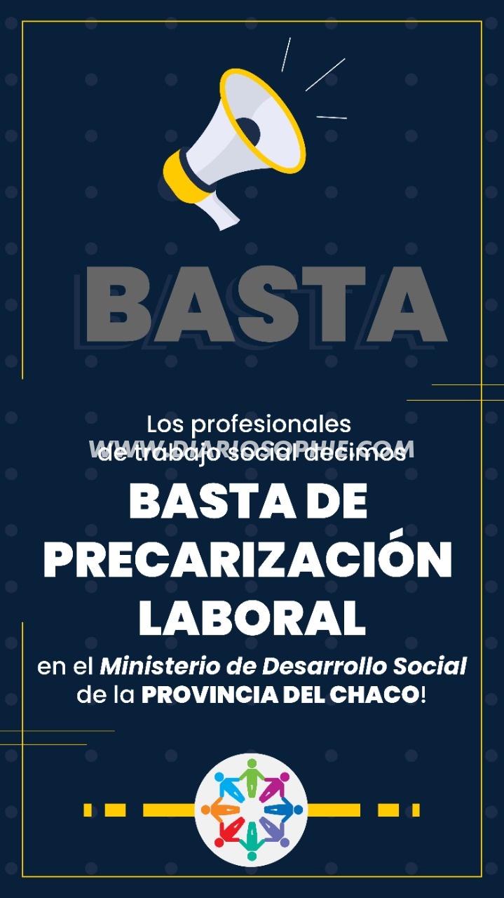 Los profesionales de trabajo social que se desempeñan en el Ministerio de Desarrollo Social de la Provincia del chaco. Dicen basta a la precarización laboral en condiciones de BECADOS, percibiendo un pago inhumano que no alcanza al salario mínimo vital y móvil, cómo en condiciones de vulnerabilidad y falta de recursos.