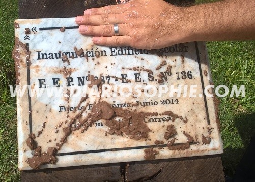 22/05/2016//  En la EEP N° 887, más precisamente frente a la Biblioteca Pública “Juana Azurduy” atentaron contra la placa recordatorio de la refacción y ampliación de la escuela “Cnel. Ramón Lorenzo Falcón” de la localidad de Fuerte Esperanza que se realizó el memorioso 14 de junio del 2014.