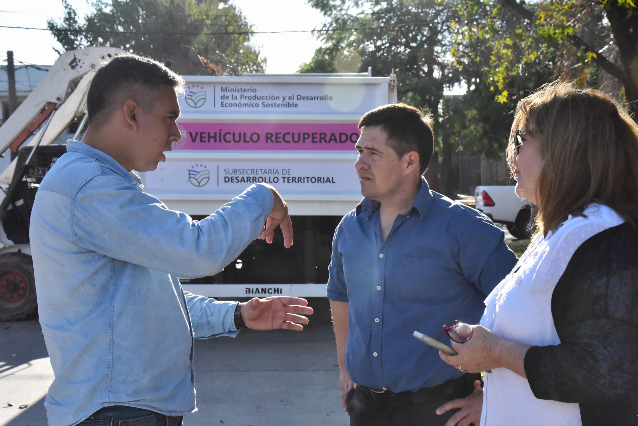 El ministro de la Producción y Desarrollo Económico Sostenible Hernán Halavacs entregó, este jueves, un camión recuperado al Programa Provincial Ecoequipo de la cartera que conduce, que realiza trabajos de limpieza y desmalezamiento.