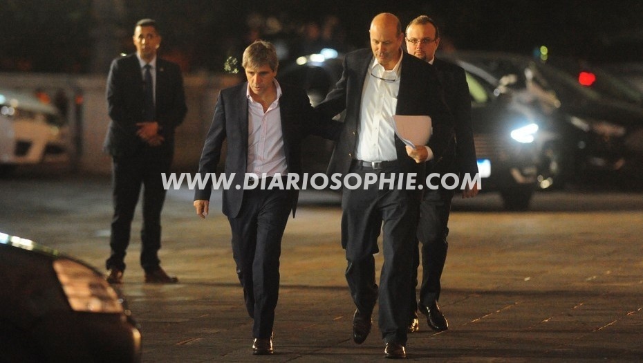 El momento de la decisión está en la foto de tapa de este martes. El ministro de Finanzas va, cabeza gacha, junto al presidente del Central que lo consuela o que lo empuja con la mano sobre la espalda. Es la noche del lunes y Luis Caputo y Federico Sturzenegger acaban de salir de la Rosada y de ser copartícipes de la decisión más difícil que tomó Macri hasta ahora: pedir el auxilio del Fondo Monetario.