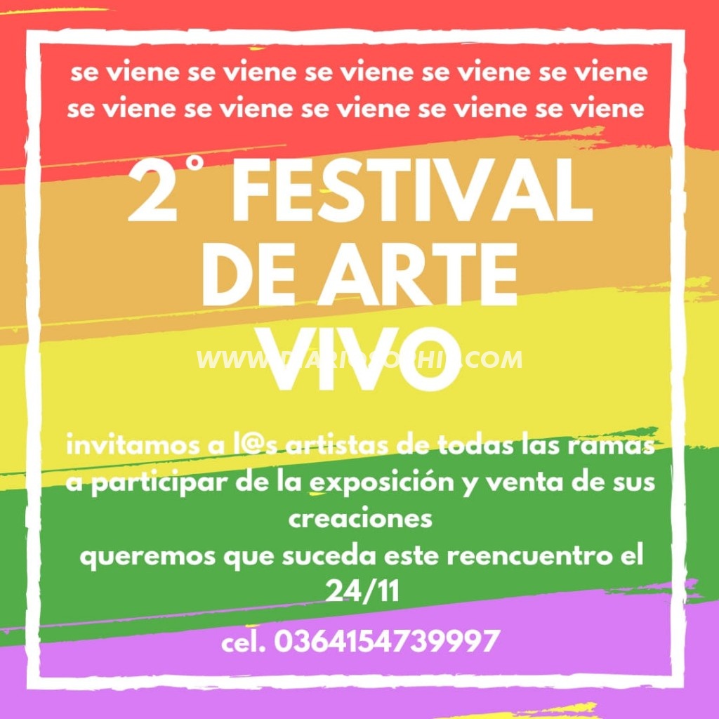 “El segundo festival del Arte Vivo se realizara el sábado 24 de noviembre del 2018 en el centro cultural municipal, calle 11 esquina 14 va a comenzar a las 20 hs.