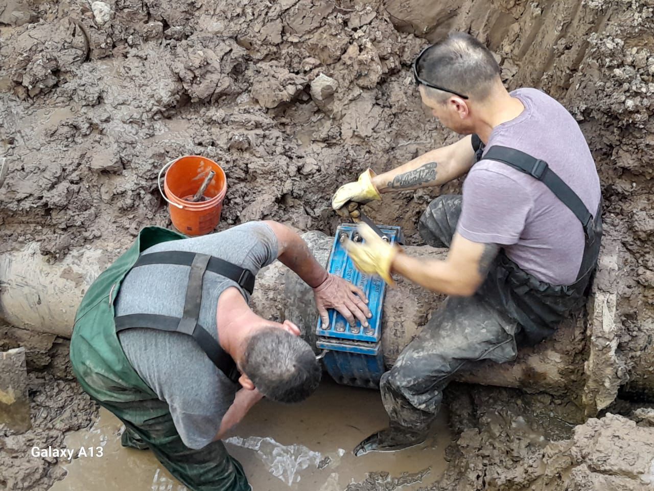 También se repararon cañerías de impulsión de 355 mm, conexiones domiciliarias de 110 mm, y un caño de impulsión de 350 mm de hierro en el Pozo N.º 6.