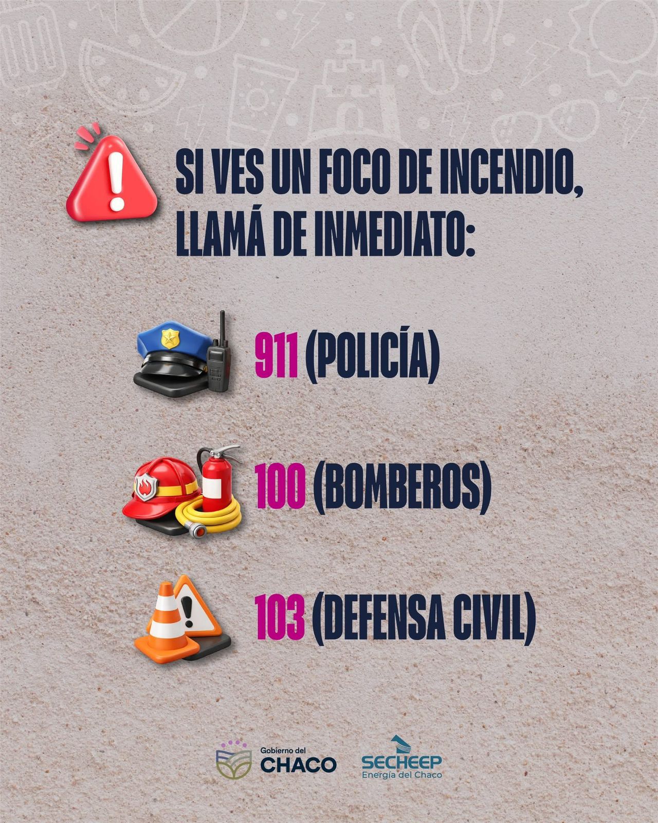Desde la empresa advirtieron que la quema de pastizales, residuos o basura en zonas cercanas a líneas eléctricas representa un riesgo grave, ya que los incendios pueden provocar daños en transformadores, cables y postes, generando cortes del suministro que afectan a miles de chaqueños.