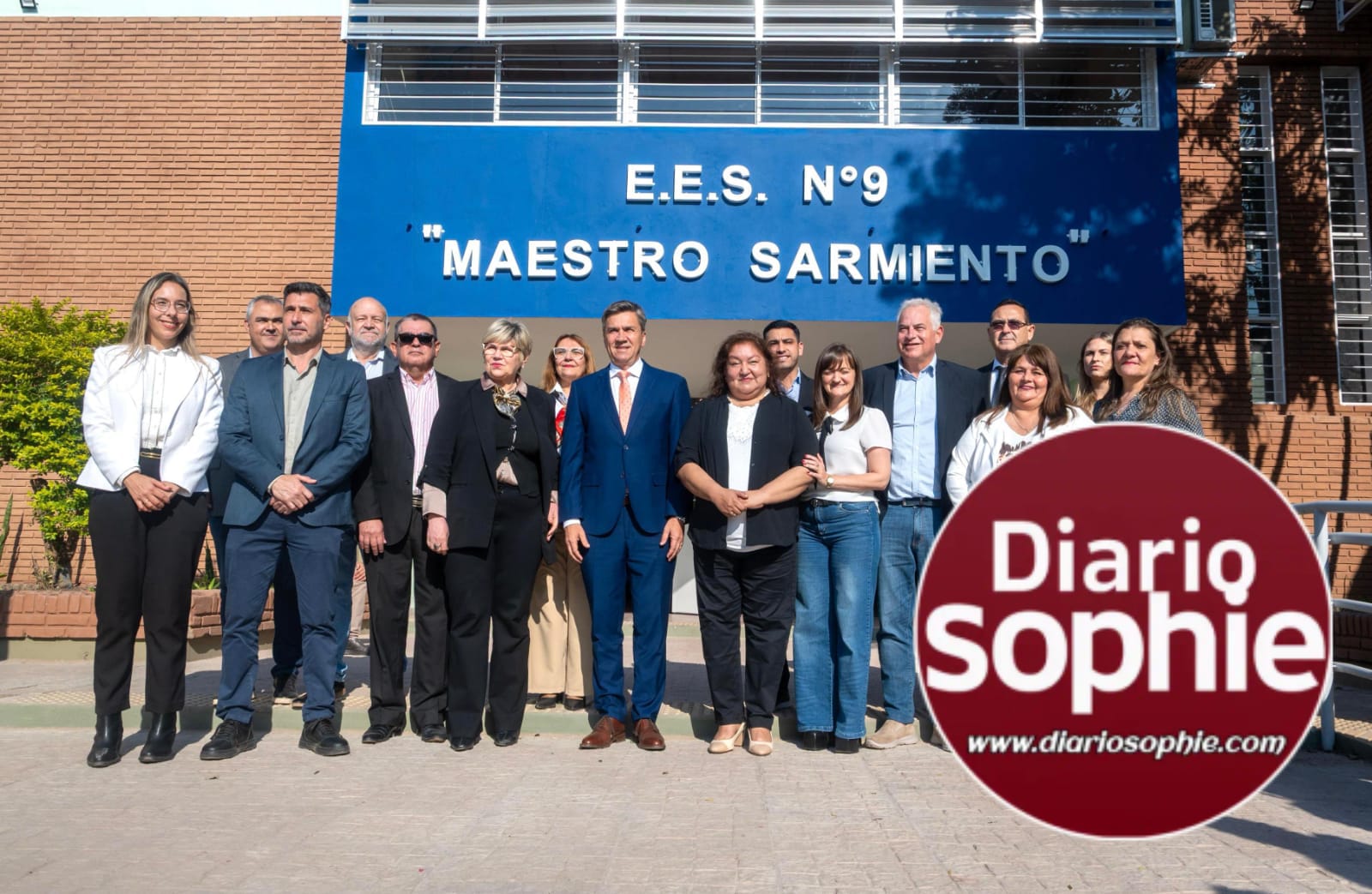 El gobernador Leandro Zdero, junto a la vicegobernadora Silvana Schneider, la ministra de Educación de la Provincia, Sofía Naidenoff, y la directora de la institución Karina Fernández, inauguraron este lunes en Villa Ángela la ampliación y refacción de la Escuela de Educación Secundaria Nº 9 “Maestro Sarmiento”, una obra muy esperada por esta comunidad.