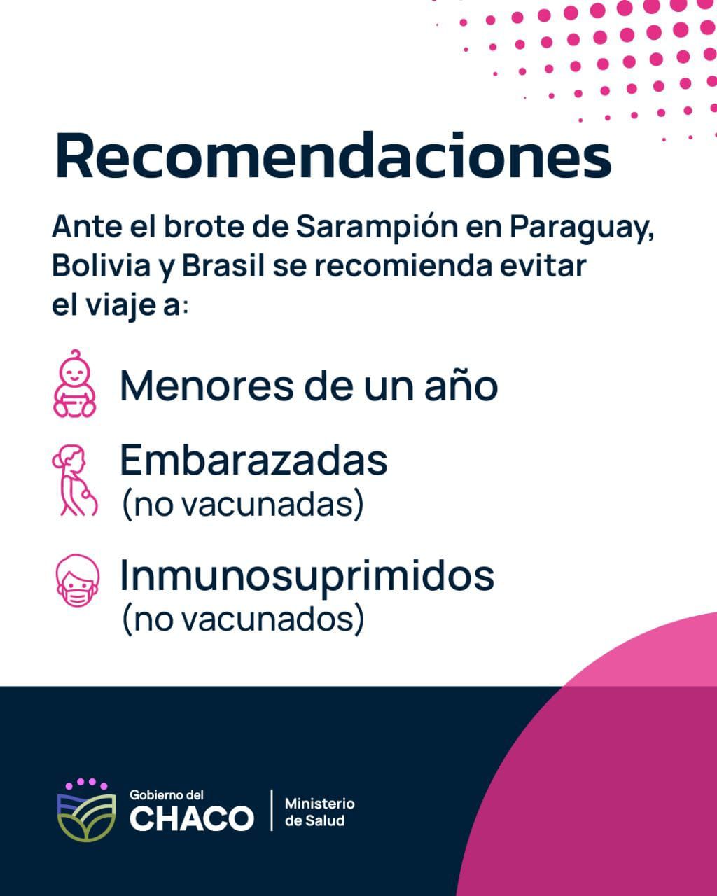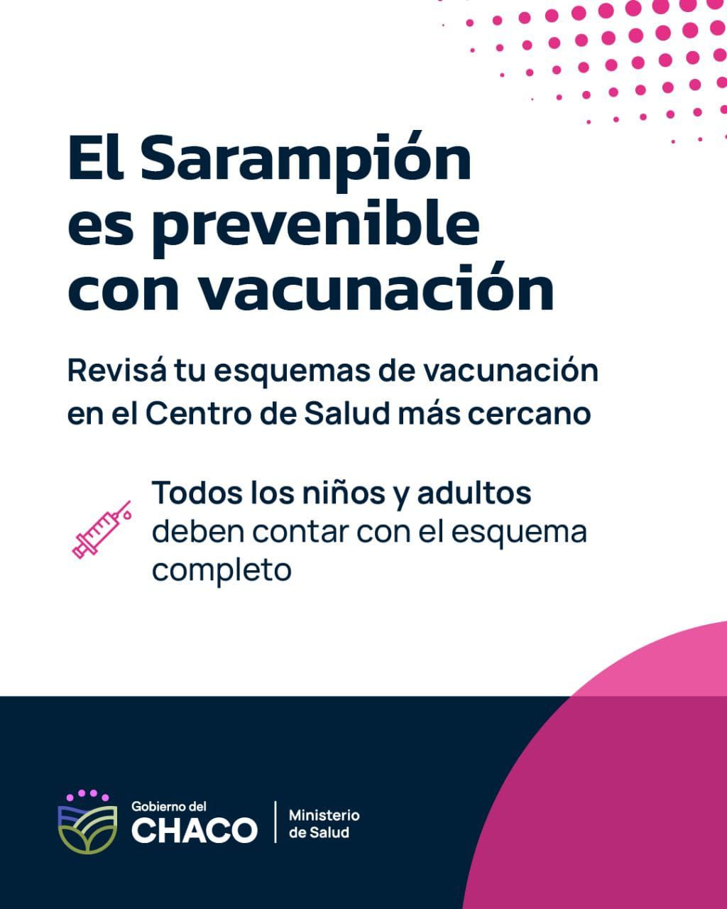 El Ministerio de Salud del Chaco confirmó que no se registran casos de sarampión en la provincia, aunque advirtió sobre la necesidad de mantener altos los niveles de vacunación por la cercanía con países donde aumentaron los contagios, como Paraguay y Bolivia.